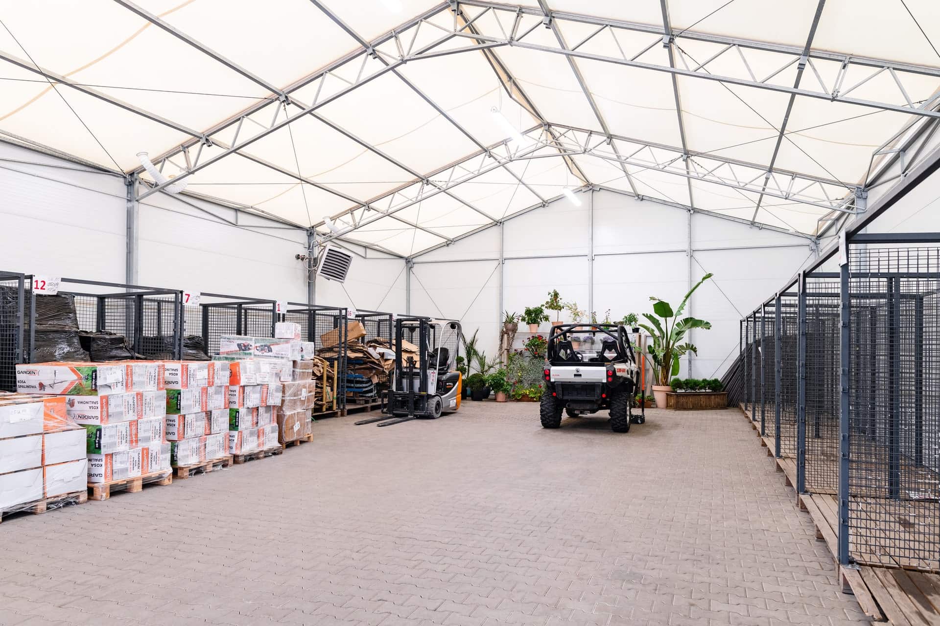 Całoroczne hale namiotowe Thermo mogą być użytkowane nieprzerwanie, bez względu na zewnętrzne warunki atmosferyczne. Są doskonałym rozwiązaniem gdy magazynowanie towarów wymaga stałych warunków.